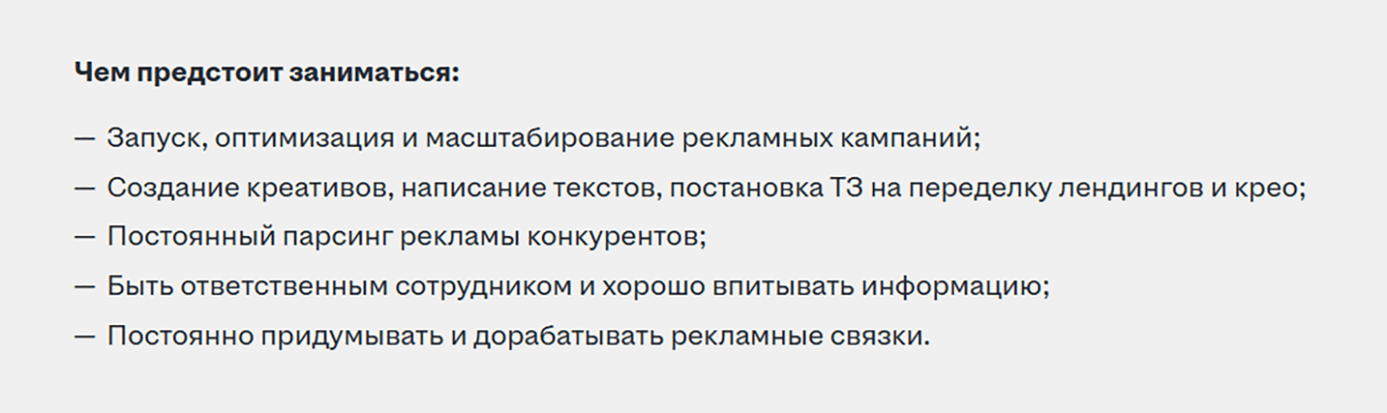Умение запускать рекламные кампании. В зависимости от проекта специалист может как самостоятельно настраивать и запускать рекламные кампании, так и контролировать этот процесс, управляя исполнителями. Важно не только владеть инструментами размещения рекламы, но и понимать, как выбирать каналы, анализировать результаты и оптимизировать кампании.