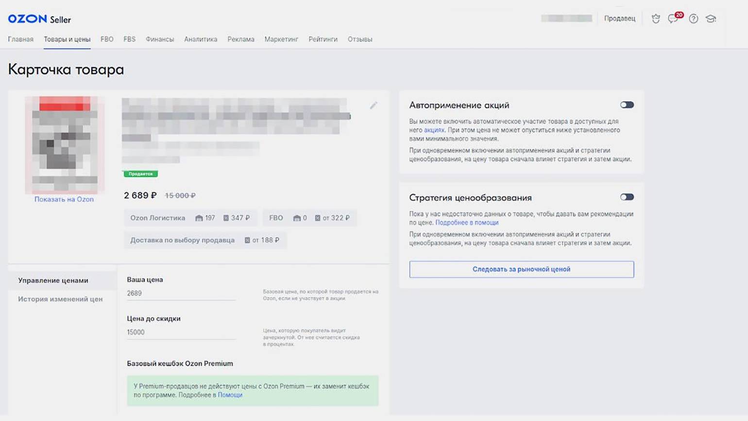 Цены лучше менять с помощью автоматической стратегии — тогда они будут следовать за рынком. Периодически делайте скидки — это повышает позиции в выдаче и привлекает внимание к вашим товарам.