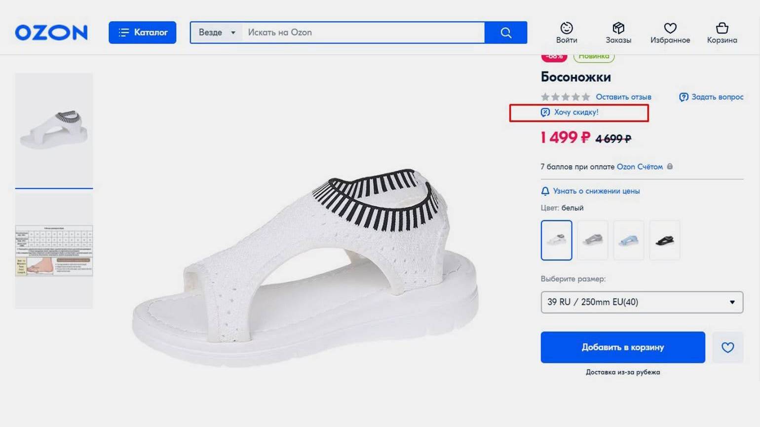 Скидка — универсальный инструмент, привлекающий внимание к товару. Просто указываете цену до скидки — и покупатель видит выгоду, посчитанную в процентах. Дополнительно можно использовать инструмент «Хочу скидку» — покупатель сможет запросить снижение цены, а вы примете решение: одобрить или не одобрить его. Также площадка автоматически предлагает скидку в 5% покупателю, который положил товар в корзину более 36 часов назад.