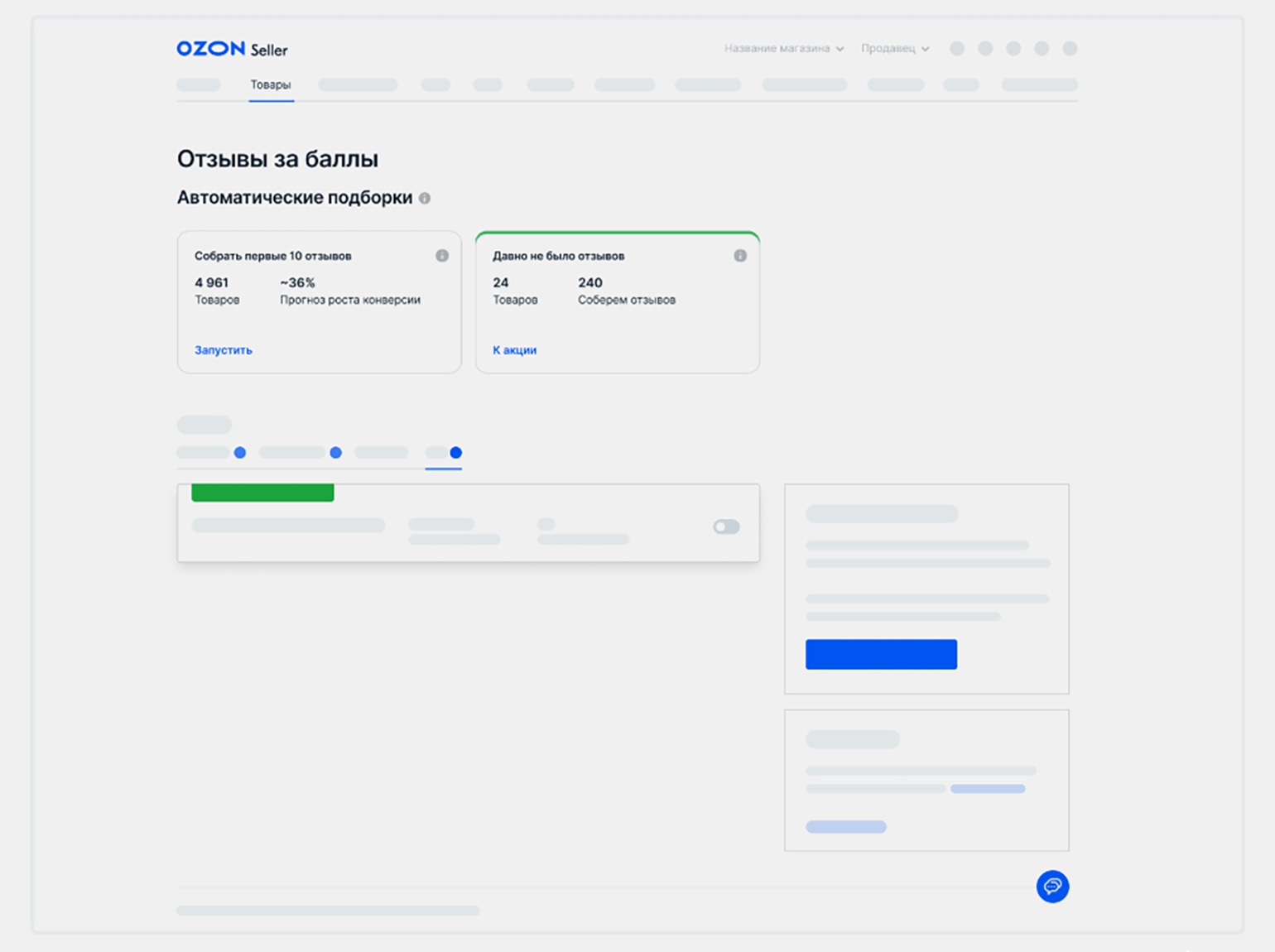 Покупатели оставляют отзывы сами. Но чтобы мотивировать их, можно использовать инструмент «Отзывы за баллы». Вы запускаете его и устанавливаете размер вознаграждения в рублях. Ozon предлагает пользователям оставить отзыв — вы оплачиваете каждый из них по указанной «ставке».