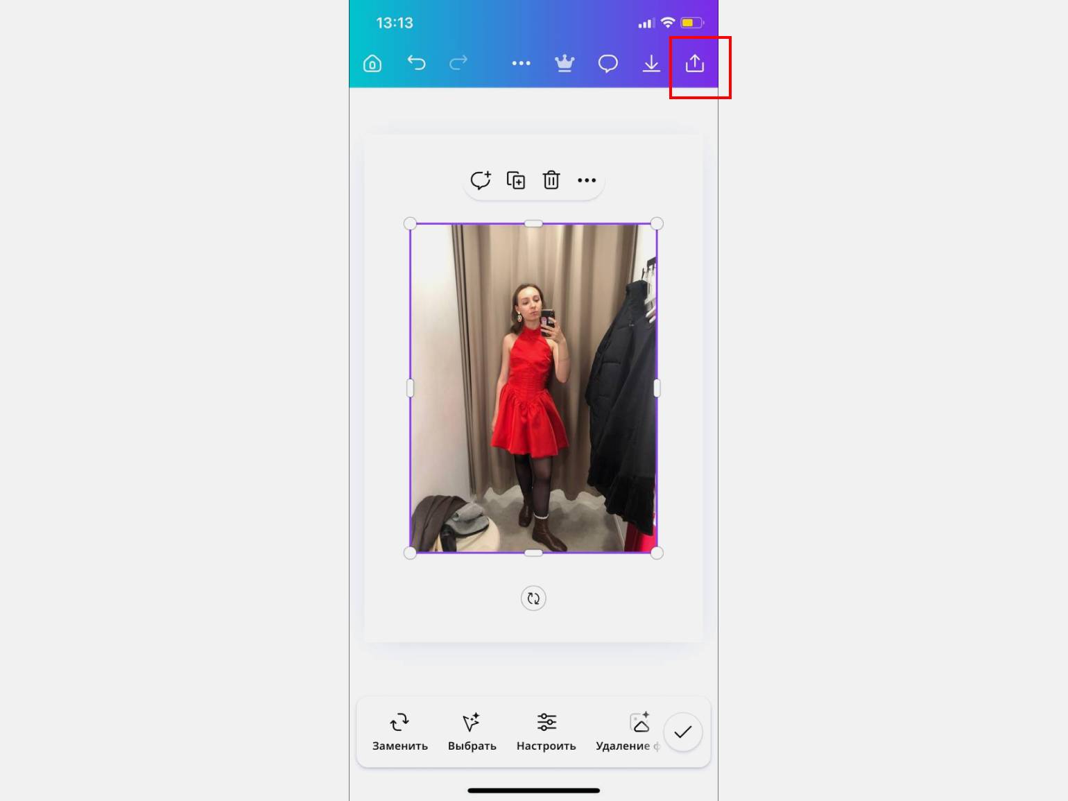 Готовый коллаж можно сразу опубликовать в сторис или сохранить себе в галерею. Для этого нажмите на кнопку в правом верхнем углу.