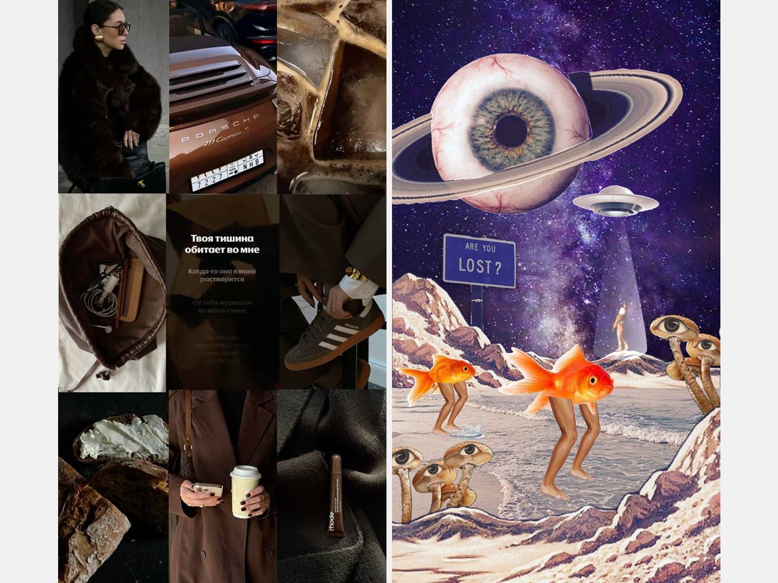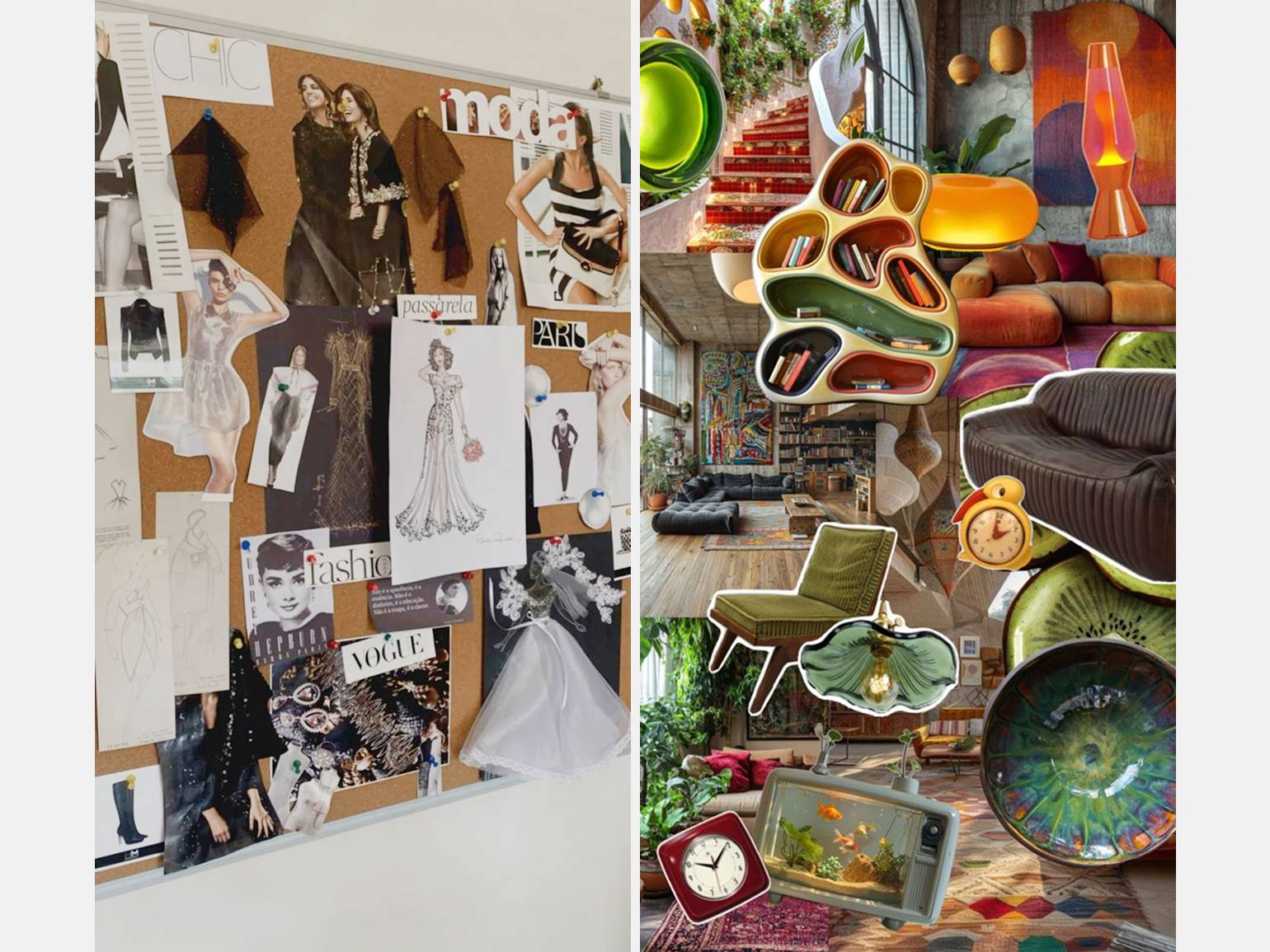 Для специалистов, которые работают с визуалом, коллаж — это полноценный рабочий инструмент. Например, фотографы, стилисты, визажисты, продюсеры и дизайнеры используют его, чтобы передать концепцию будущего проекта. Такие коллажи, передающие концепцию, называются мудбордами. В них показывают цветовую палитру, фактуры, формы и ключевые детали, которые будут использовать при съёмках, для создания коллекции одежды или дизайна интерьера.
