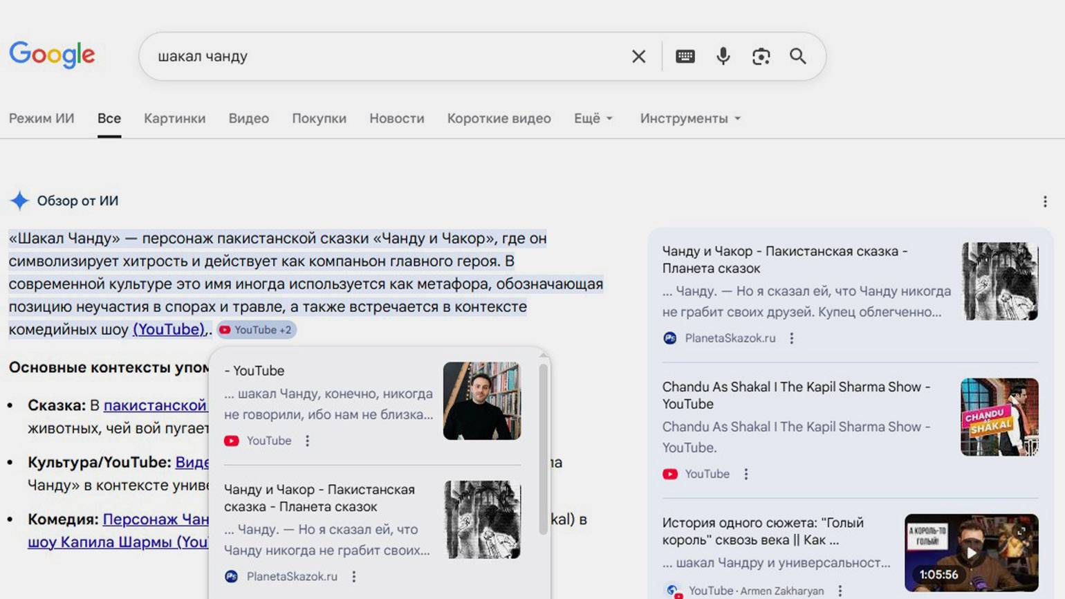 На YouTube можно рассказать о содержании ролика в его описании, указав таймкоды. Или продублировать ключевую информацию из видео в посте на канале. Нейросеть Gemini, на базе которой работают ИИ-ответы Google, быстро проиндексирует такой пост и сможет использовать его как источник.