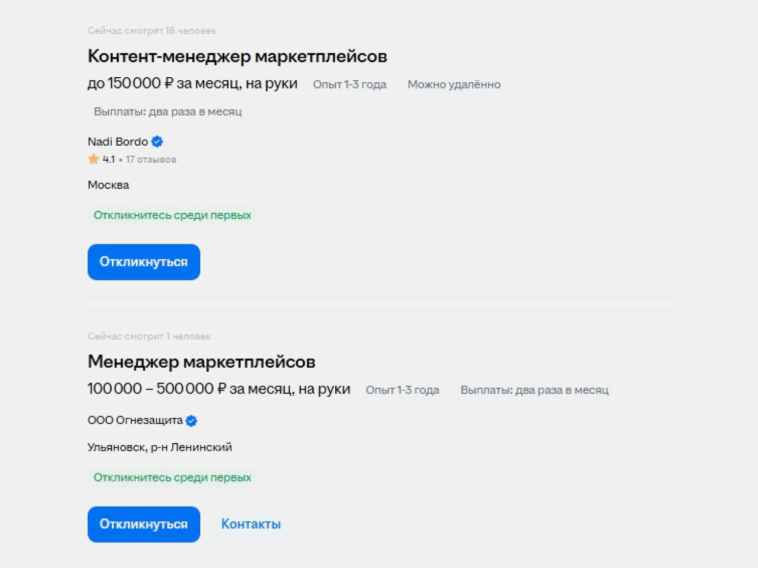 Если вы дизайнер и рисуете баннеры для карточек товаров или таргета, то, изучив основы работы с Ozon или Wildberries, вы сможете претендовать на стартовую позицию менеджера маркетплейсов.