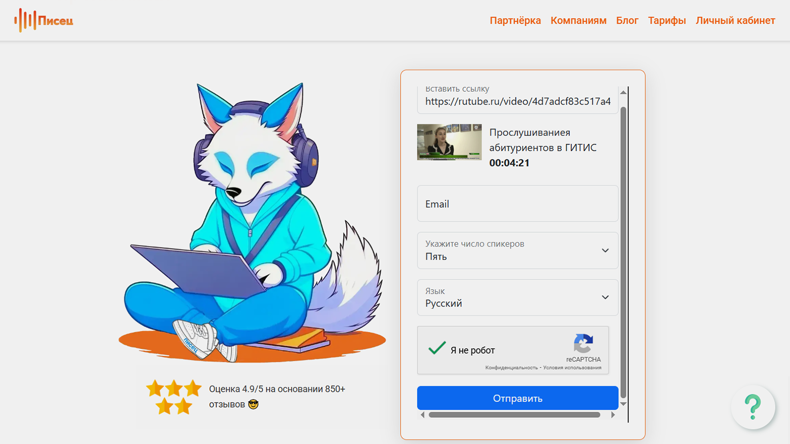 Сервис «Писец» работает с аудио- и видеофайлами. Поддерживаются форматы WMA, MP4, MKV, FLV, OGG, AAC, WAV, AVI, MOV, WMV, M4A, MP3, FLAC. Также можно использовать ссылку на файл из открытых источников — например, с Rutube.