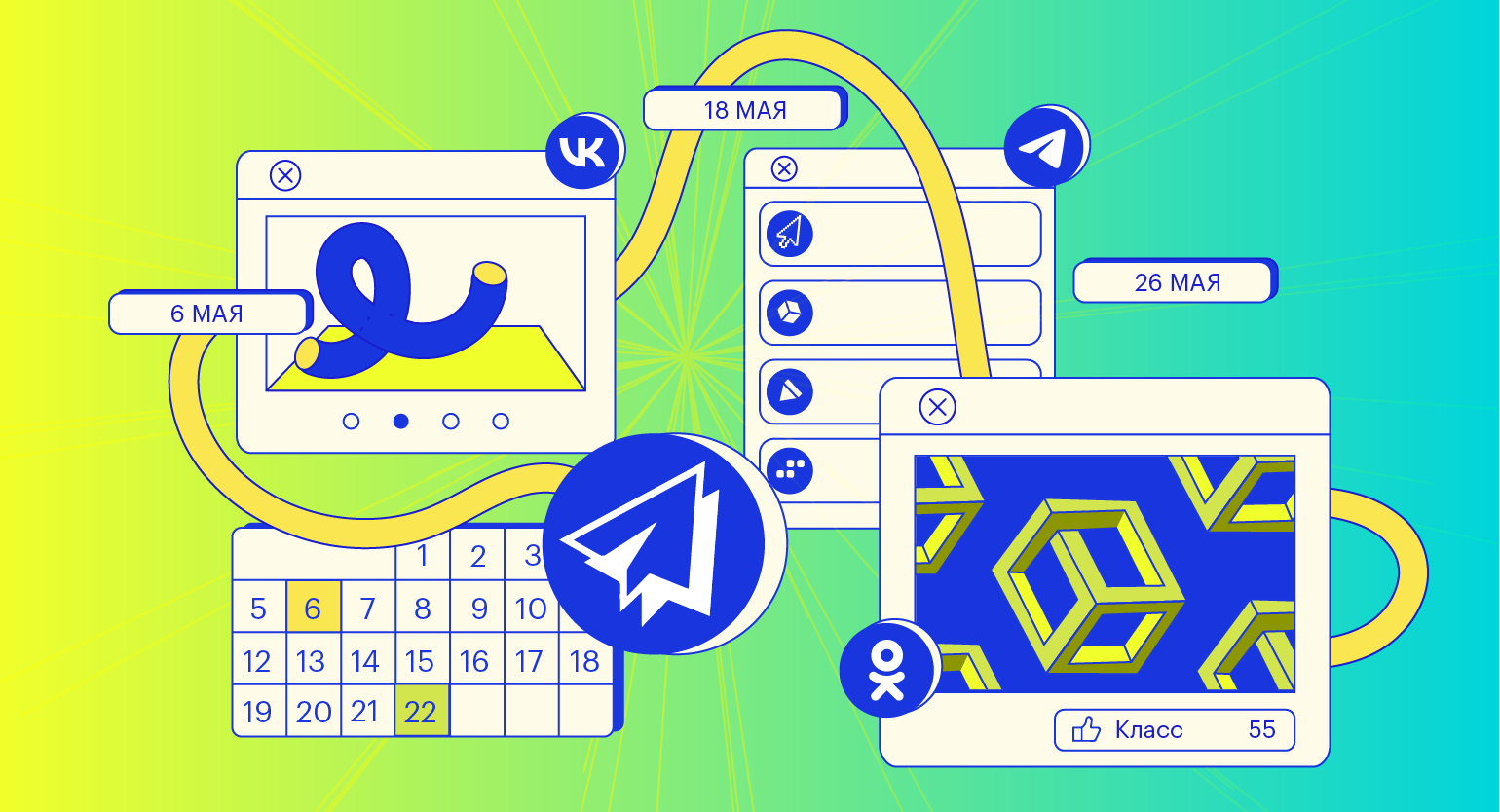 Запланировать пост. В SMMplanner можно планировать выход постов в нескольких соцсетях одновременно. Можно ставить в постах эмодзи, добавлять к ним фото и видео, геометки, опросы, ссылки и музыку.