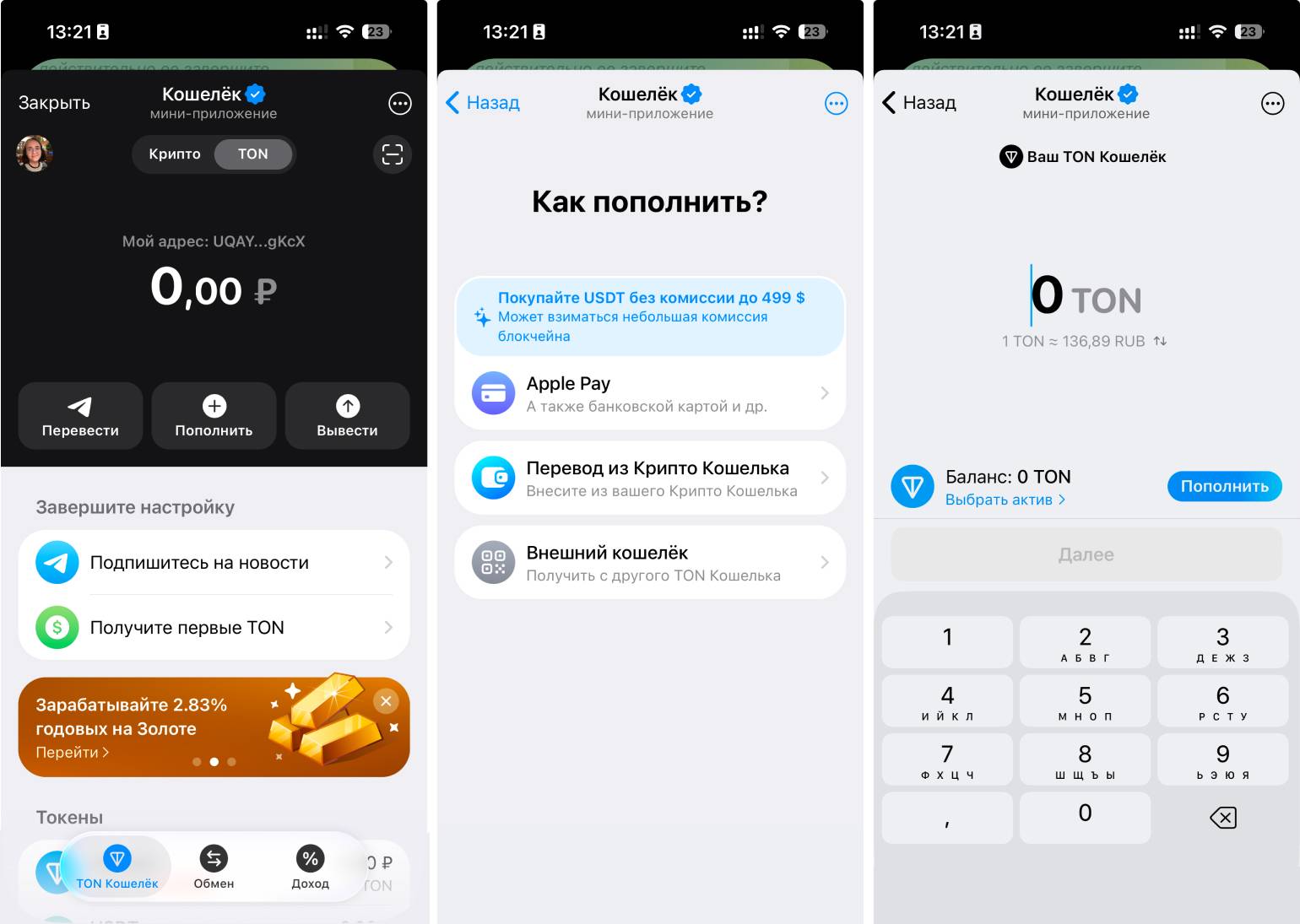 После завершения операции в вашем кошельке появится счёт в криптовалюте Telegram — Toncoin. Её можно обменять на другие монеты или обналичить через криптовалютные биржи и обменники, поддерживающие TON.