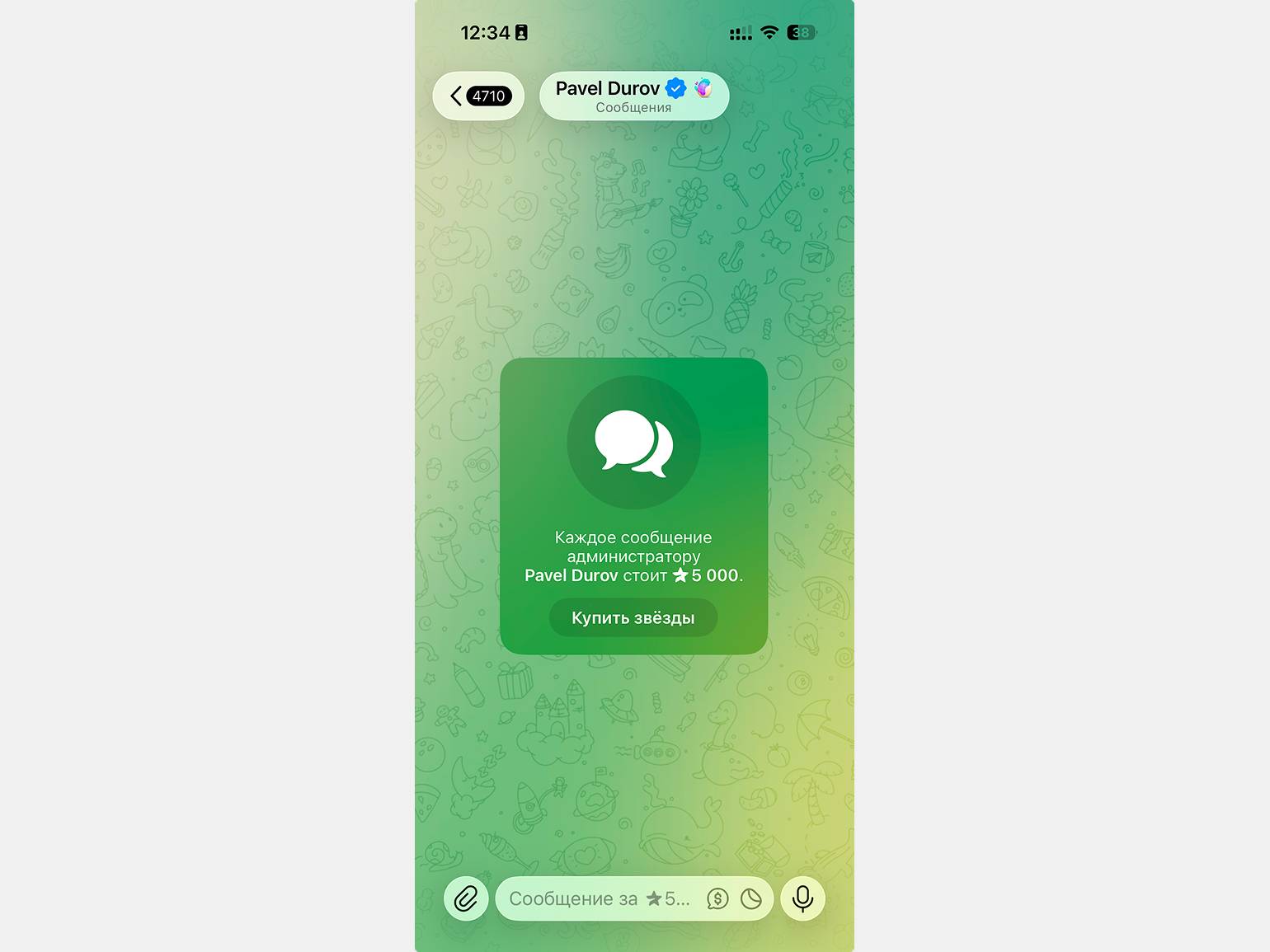 Общаться с теми, кто сделал сообщения платными. Подписчики Telegram Premium и авторы каналов могут разрешить писать себе в Telegram только за звёзды и выбрать, сколько стоит одно сообщение. Отправить им сообщение первым можно будет, только заплатив указанное количество звёзд.