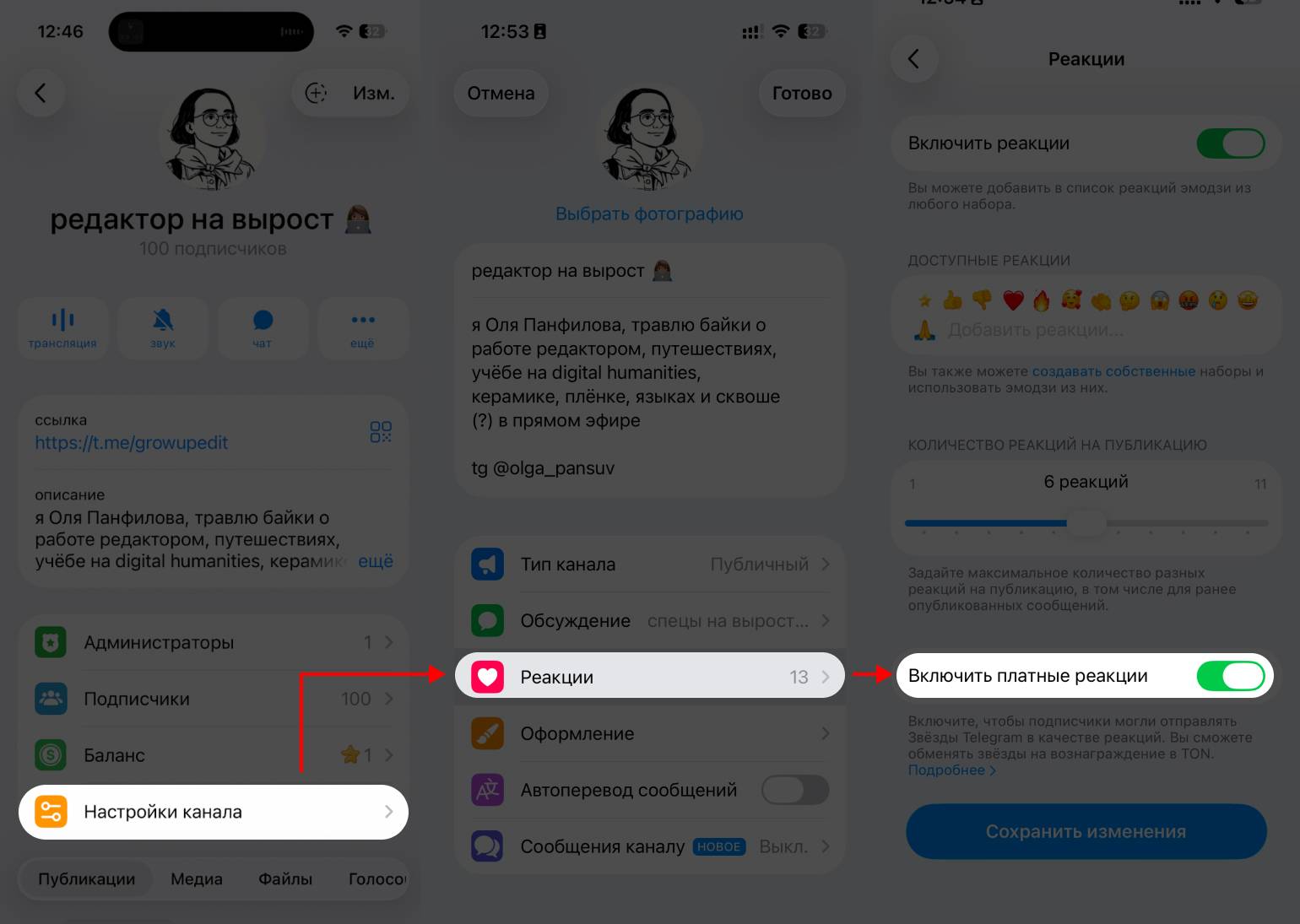 Получать платные реакции. Если вы хотите получать донаты за публикации в Telegram, откройте «Настройки канала» — «Реакции» и нажмите «Включить платные реакции». Тогда все, кто захочет вас поддержать, смогут отправлять звёзды в виде реакций.