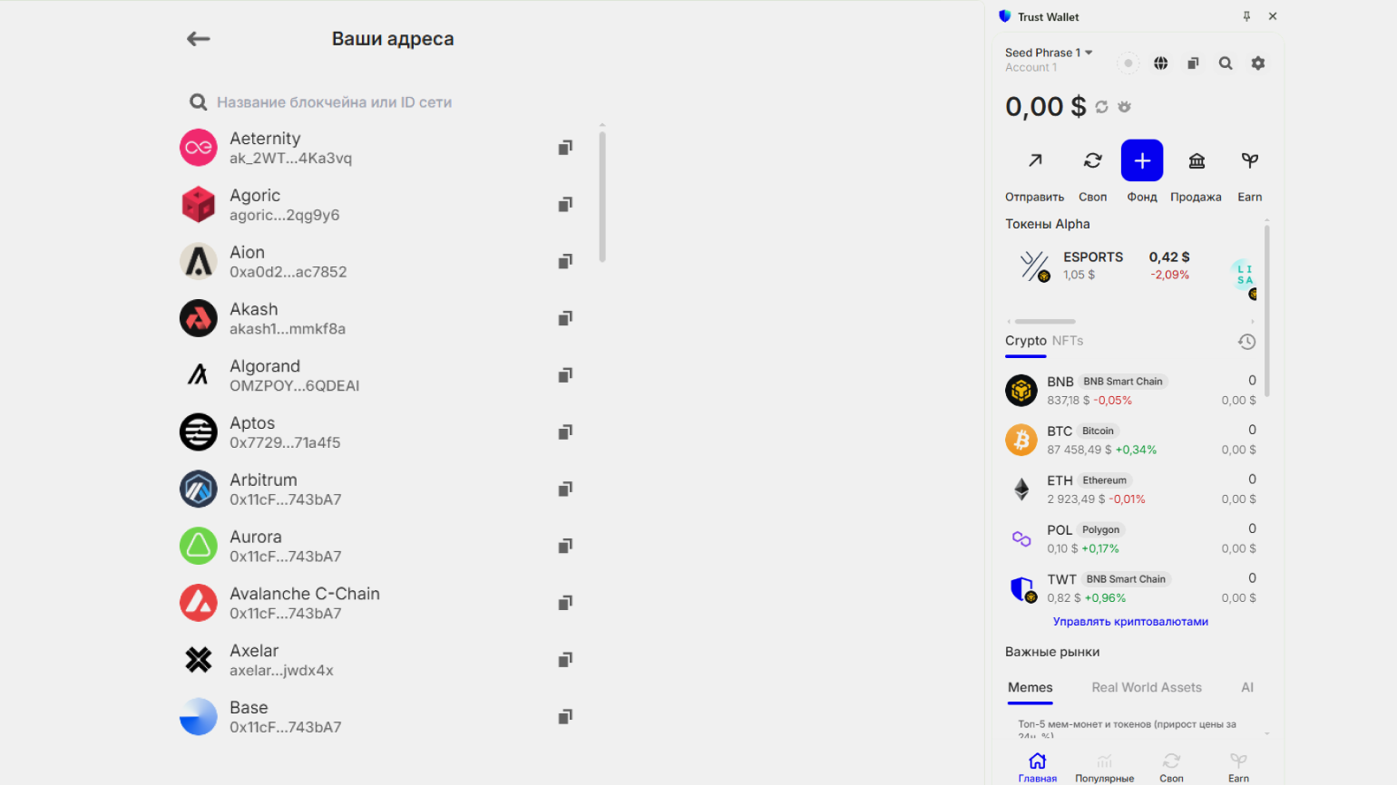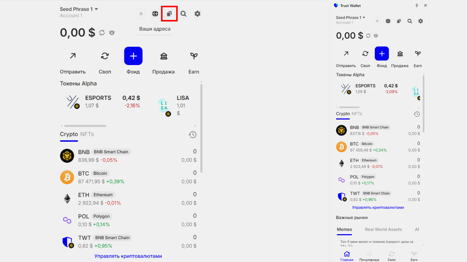 Разберём пошагово создание кошелька и работу в нём на примере случайно выбранного простого некастодиального кошелька Trust Wallet в браузере Chrome.