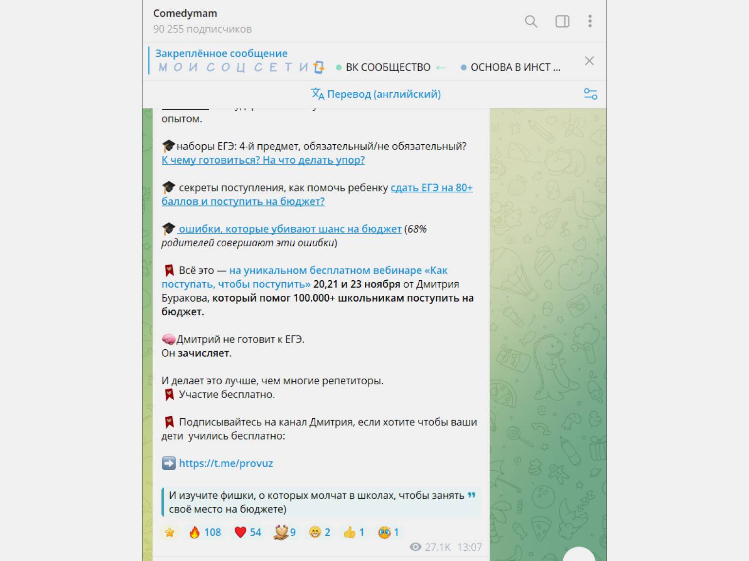 Это полноценная работа в SMM со своими подводными камнями: нужно уметь не только оформлять красивые посты, но и достигать целей своего клиента: продаж его инфопродуктов или повышения лояльности в комментариях. Обычно за ведение канала ежемесячно платят фиксированную сумму, реже — договариваются о проценте с продаж.