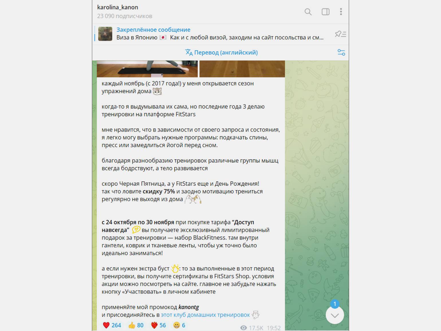Нативные посты хорошо подходят для авторских каналов: блогер рассказывает о продукте в характерной для себя манере, и аудитория воспринимает рекламу естественно.