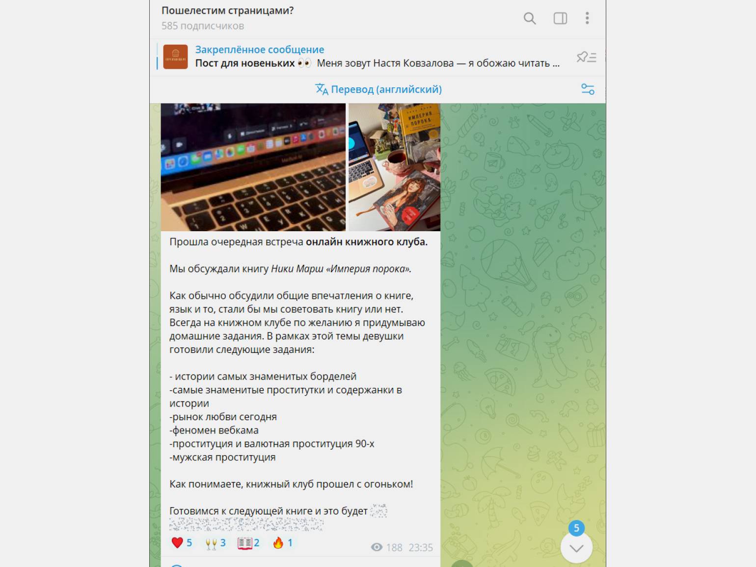 Скриншот: @psyholog_ivna / Telegram / Skillbox Media