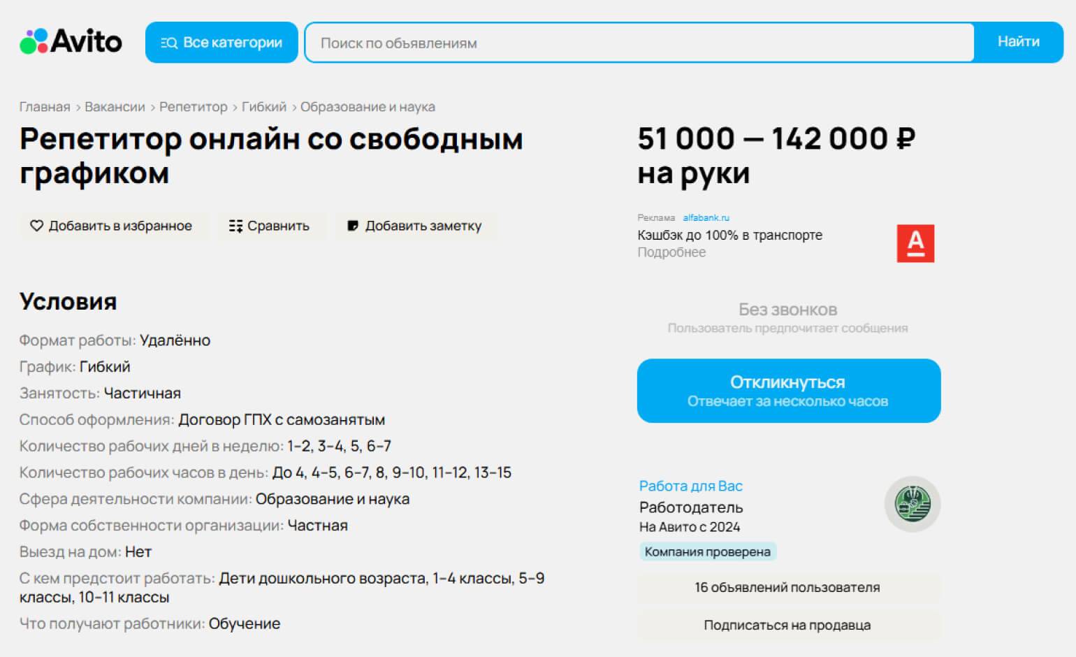 На сайтах по поиску работы можно встретить и вакансии для начинающих репетиторов. В них обещают нормальную зарплату, но стоит учитывать, что такой доход, скорее всего, возможен только при большой занятости.