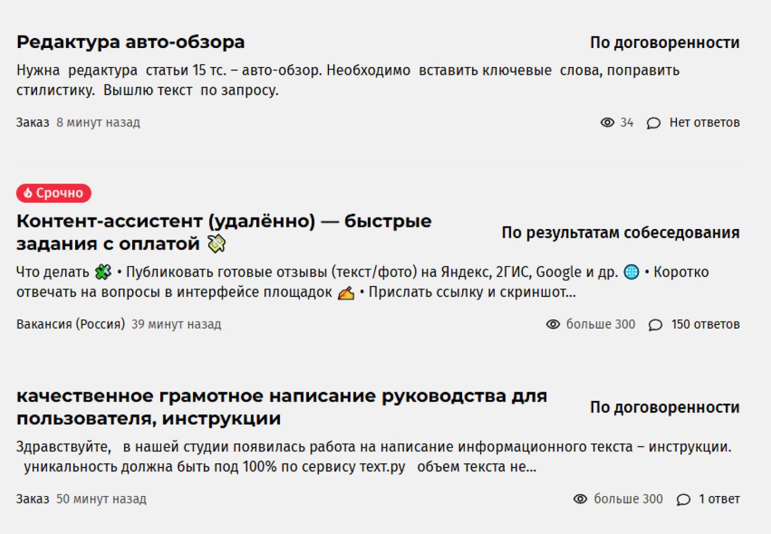 На некоторых биржах отклик на задание может быть платным, где-то — бесплатным. Важно помнить: интересные задания расходятся очень быстро, поэтому лучше регулярно проверять сайт или включить уведомления в приложении, чтобы не пропустить подходящие предложения.