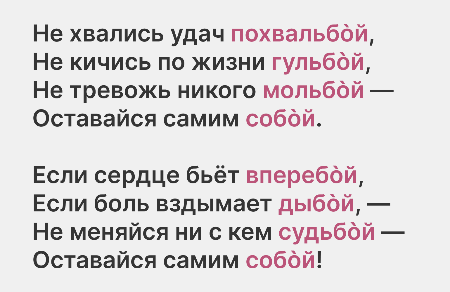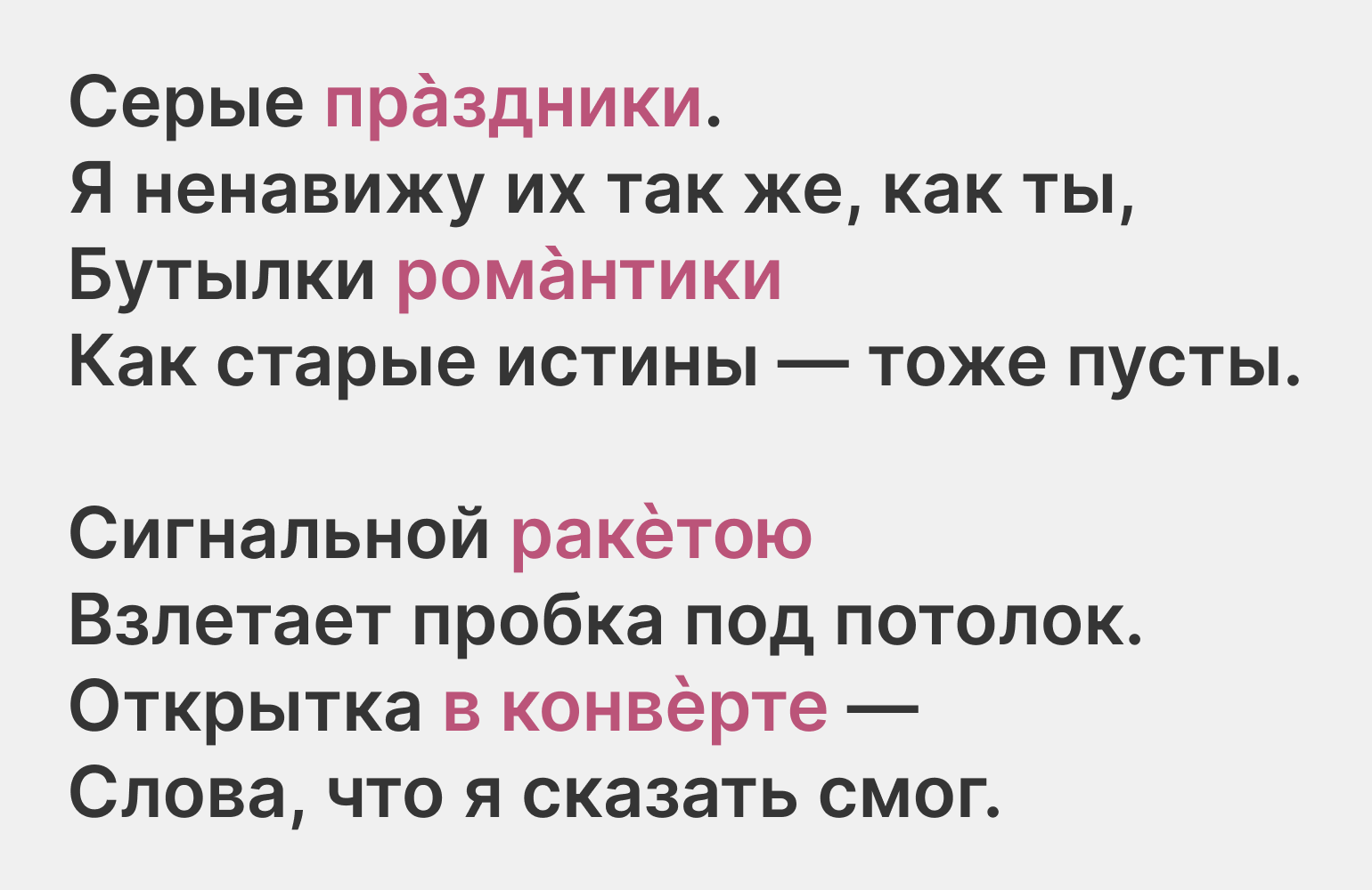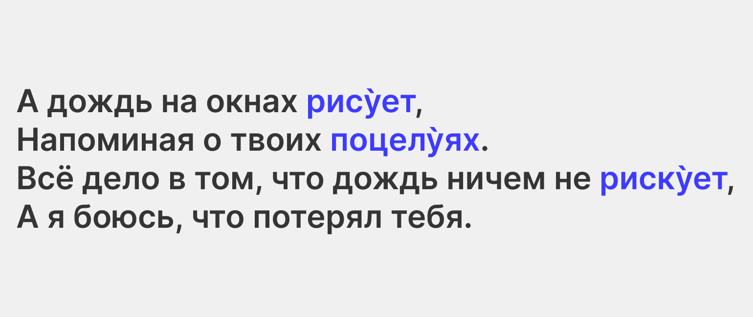 Звучит уже не так романтично и возвышенно, правда? Текст стал проще, приземлённее. Да и рифмы мы выбрали самые простые.