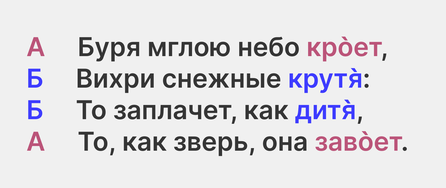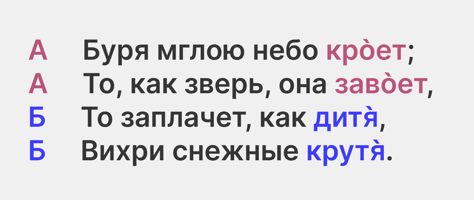 Схема рифмовки — это порядок, в котором строки рифмуются между собой. Разберём самые распространённые варианты таких схем, а заодно понаблюдаем, как меняется восприятие текста в зависимости от выбранной схемы.