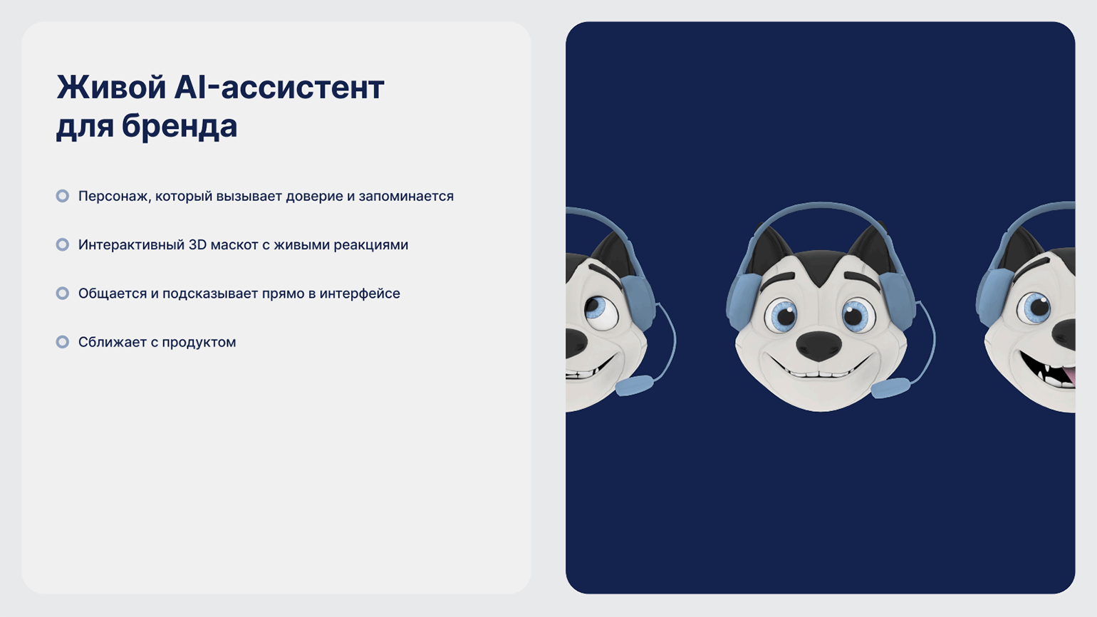 — Структурированная и выверенная работа, за ней приятно наблюдать. Идея с 3D-маскотом — очень эмпатичная история, которая поможет ассоциировать ИИ-ассистента как что-то живое и приятное. В будущем хотелось бы увидеть его чуть более „диджитальным“ и немного упрощённым. Подкину ребятам идею, как сблизиться с аудиторией разработчиков. Попробуйте использовать цветовую палитру из редакторов кода. Возможно, стоит уйти только в тёмную тему, и тогда интерфейс для кодеров станет роднее.