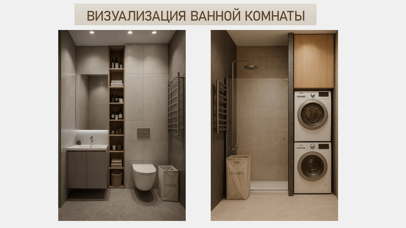 Среди важных пожеланий — вписать в ванную комнату стиральную и сушильную машины, кухню сделать небольшой, потому что студентка не будет посвящать много времени готовке, и обязательно обустроить рабочее место для учёбы.