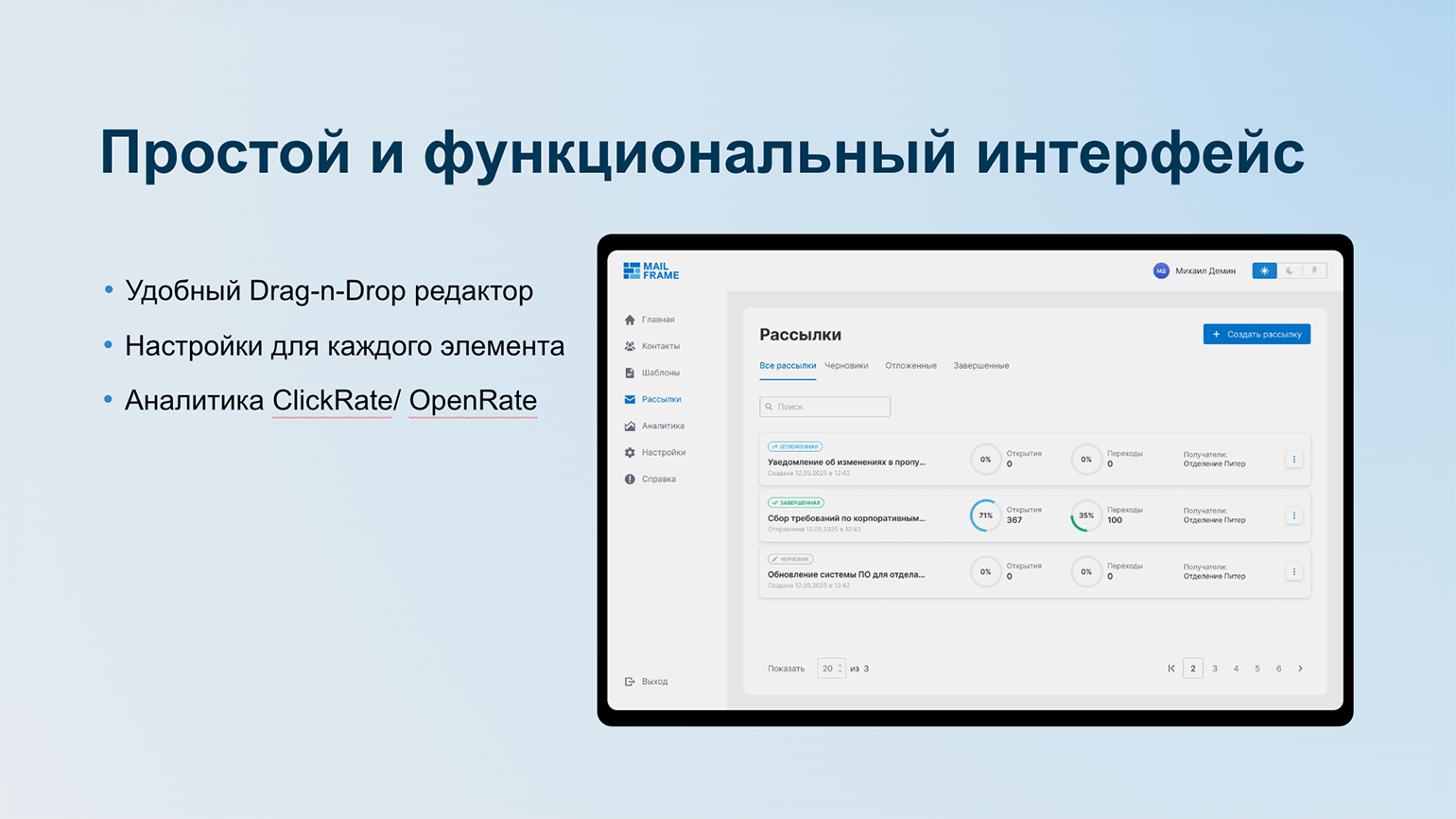 Эксперты и команда заказчика выделили и большой потенциал, который есть у продукта MailFrame.