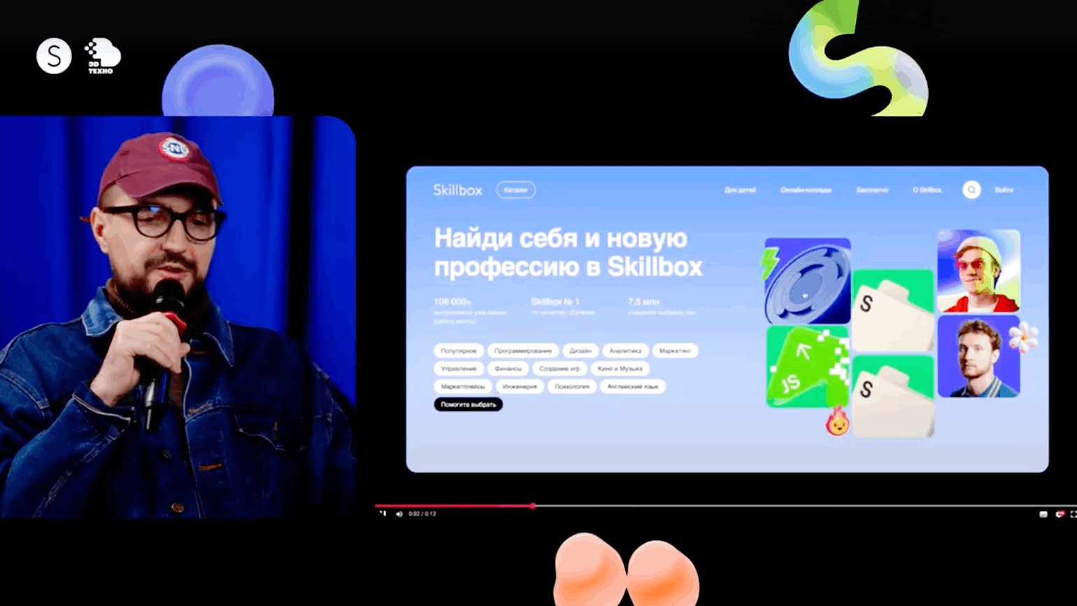 Так, дизайн-директор продакшена Skillbox Дмитрий Черненко рассказал зрителям о вайб-кодинге — программировании с помощью искусственного интеллекта. Он показал, как использовать ИИ, чтобы получать рабочий код даже без знания языков и строгих правил программирования.