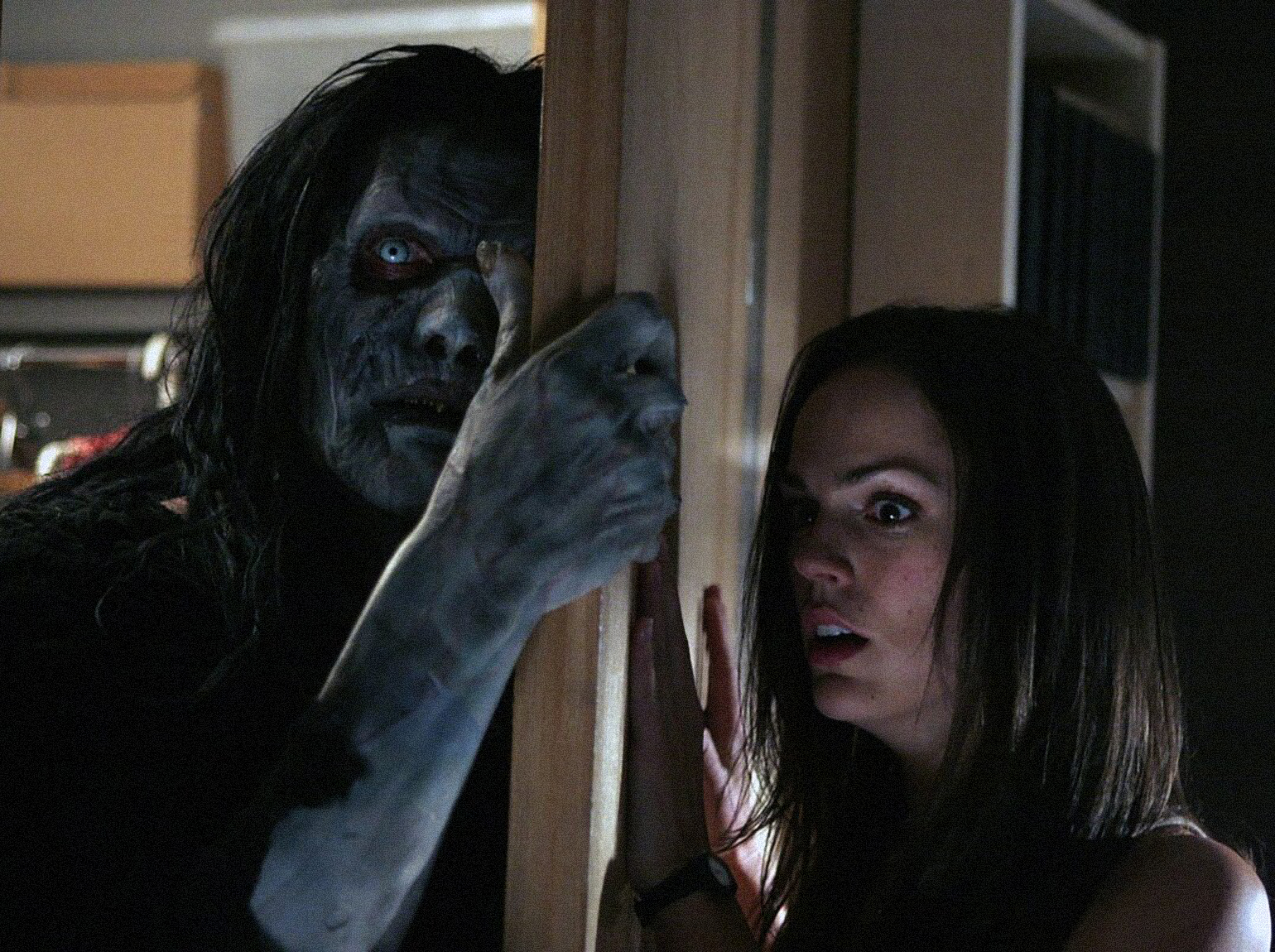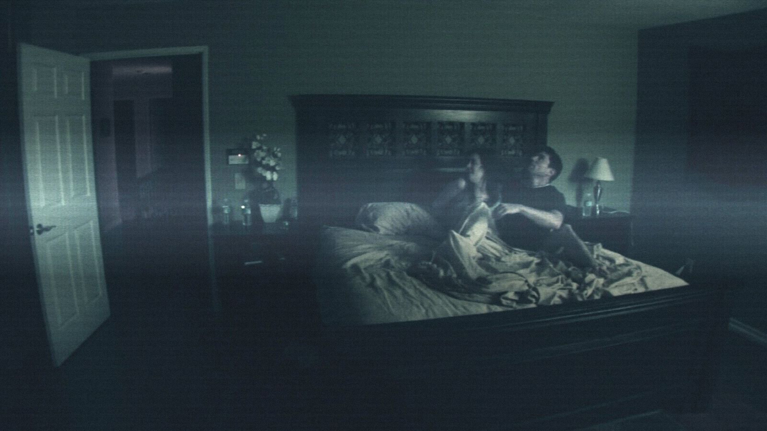 Другой пример: в «Паранормальном явлении» (2007) мы видим ночную запись с камеры в спальне. Настежь раскрыта дверь, впереди — тёмный коридор. Слышны медленные шаги. И тут — бум! — из дверного проёма вылетает тело мужчины, сшибая камеру на пол. Если зритель в этот момент не подскочил на месте, то у него, похоже, очень крепкая нервная система.